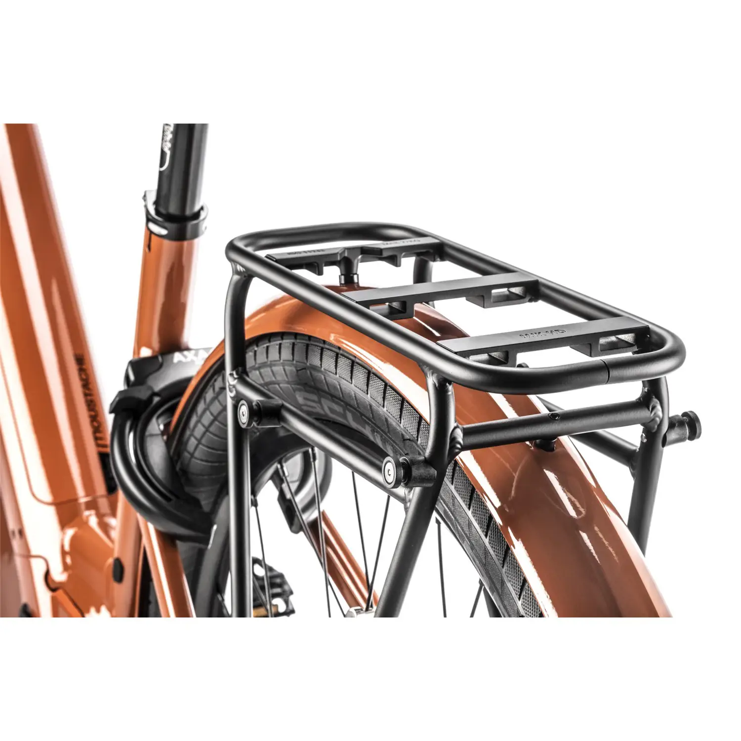 מנעול פרסה משולב AXA Block XXL לאבטחת האופניים בסיבוב פשוט של המפתח לעצירה מהירה. תואם לשרשרת AXA Plug In לאבטחה נוספת. אופני Lundi 27.2 מצוידים במגיני בוץ צינוריים בלעדיים שלנו, חזקים ואופנתיים, ממורכזים בצורה מושלמת על הגלגל כדי להגן עליכם בכל תנאי מזג האוויר ולאורך זמן, וכוללים גם מגן שרשרת, אידיאלי לשמירה על התלבושת האהובה עליכם נקייה ללא רבב! לבסוף, המטען האחורי שלו, התואם לתקני QL3 ו-MIK HD, מאפשר לכם לחבר את האביזרים שלכם בלחיצה אחת. מהיר וקל!