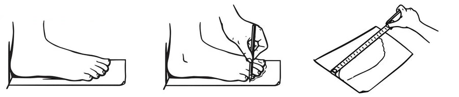 הנח פיסת נייר על הרצפה ליד הקיר. עמוד על הנייר עם העקב צמוד לקיר וסמן את האצבע הארוכה ביותר על הנייר. מדוד את המרחק מהקיר לסימן. הערה: נעלי רכיבה מיועדות להיות צמודות וצמודות. אם זה בין מידות, תגדל מידות.