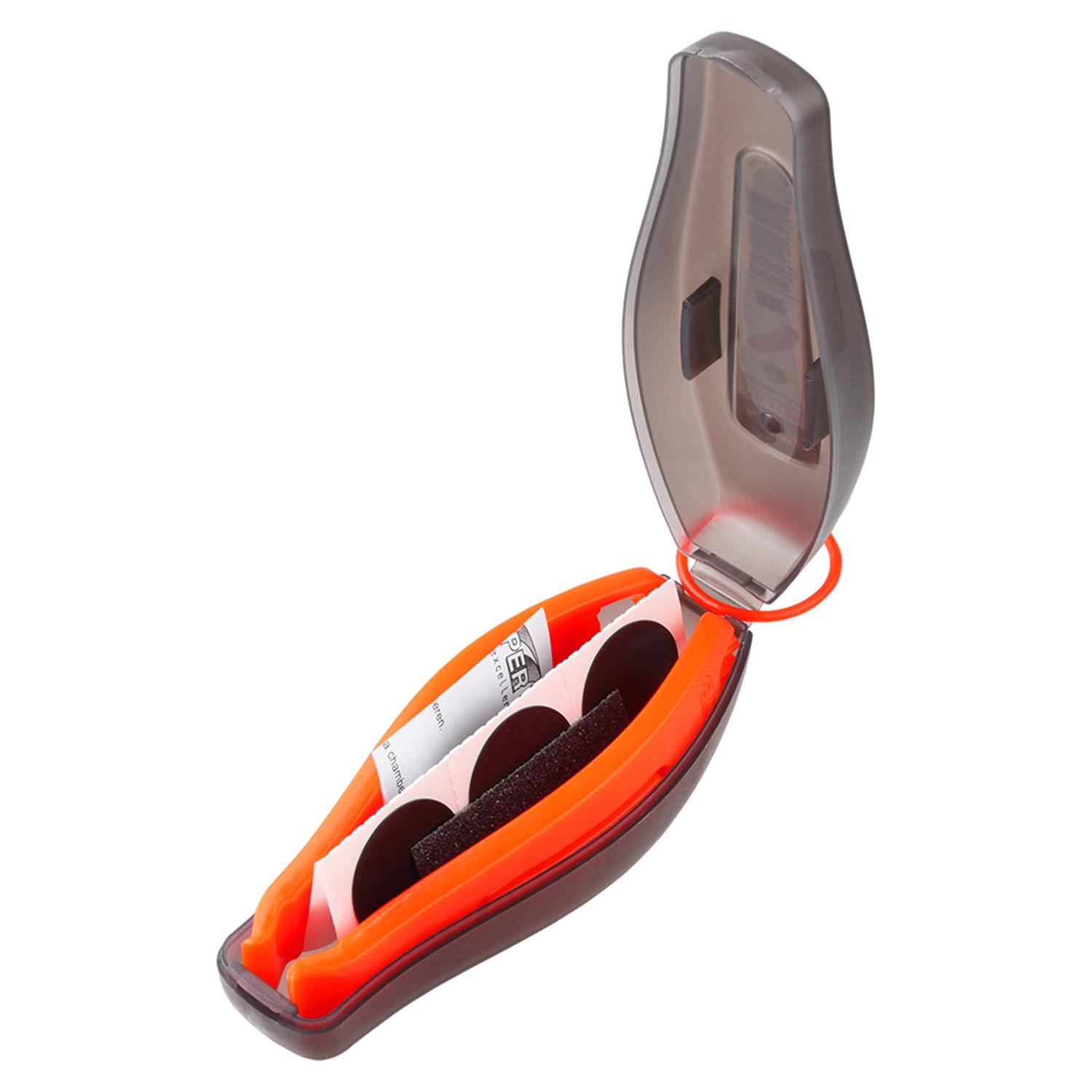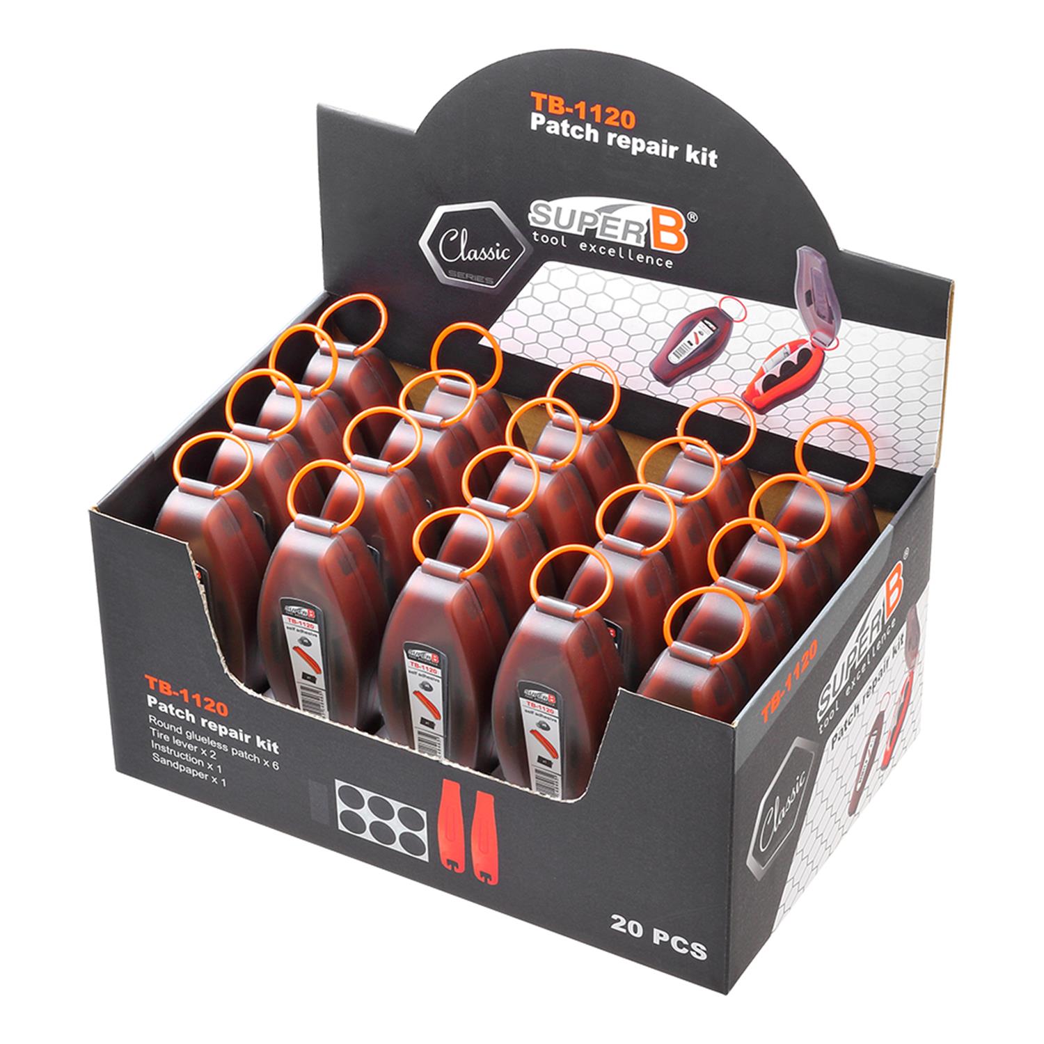 סט תיקון פנצ'רים (2 כפיות+6 מדבקות) – Super B TB-1120 Patch repair kit כל ערכה נארזת במארז פלסטיק חדשני בצורת ראש תנין עם נייר זכוכית לשיוף הפנימית. עם טבעת O לפונקצית קולב. זו הערכה המושלמת, חובה לכל רוכב. לינק למוצר
