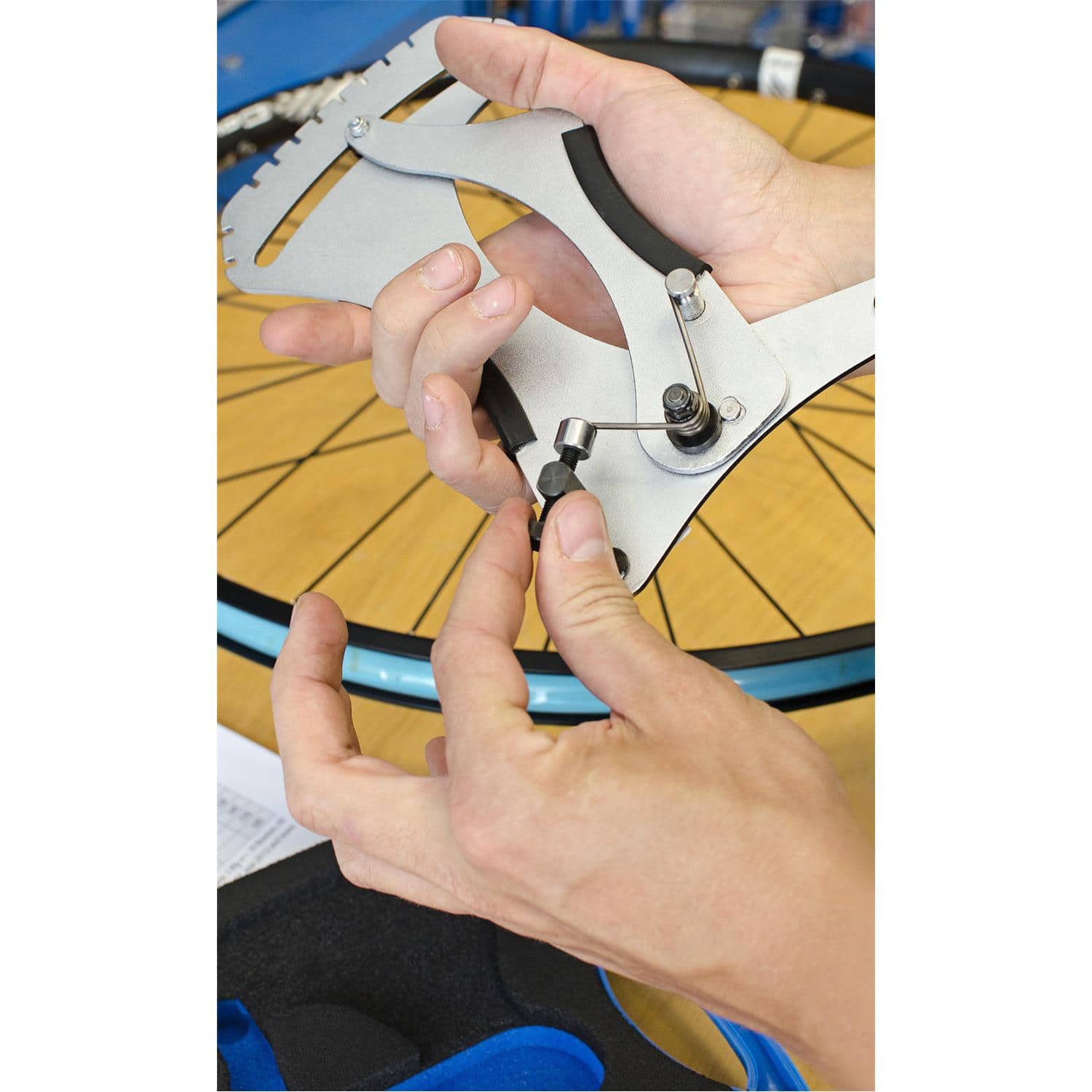 מד מתח החישורים האוניברסלי של Unior מודד את מתח החישור בכל סוג של חישור. מד מתח החישורים האנלוגי מגיע מכויל ומוכן לשימוש. כדי להשתמש, פשוט לחץ על הידית, מקם את החישור בין שני הפינים ושחרר את הידית. המד המעוצב כהלכה קל לקריאה. יש לבדוק את הערך הנמדד בטבלת המידע של החישורים, בהתבסס על מפרט החישורים. הטבלה המודפסת מצורפת לכלי יחד עם הוראות שימוש מדויקות יותר. תכונה נוספת הכלולה בכלי היא גם מד עובי חישור, שעוזר בכל התהליך. כל שעליך לעשות הוא להכניס את החישור לאחד הפתחים העליונים ולקרוא את ערך העובי המדובר.